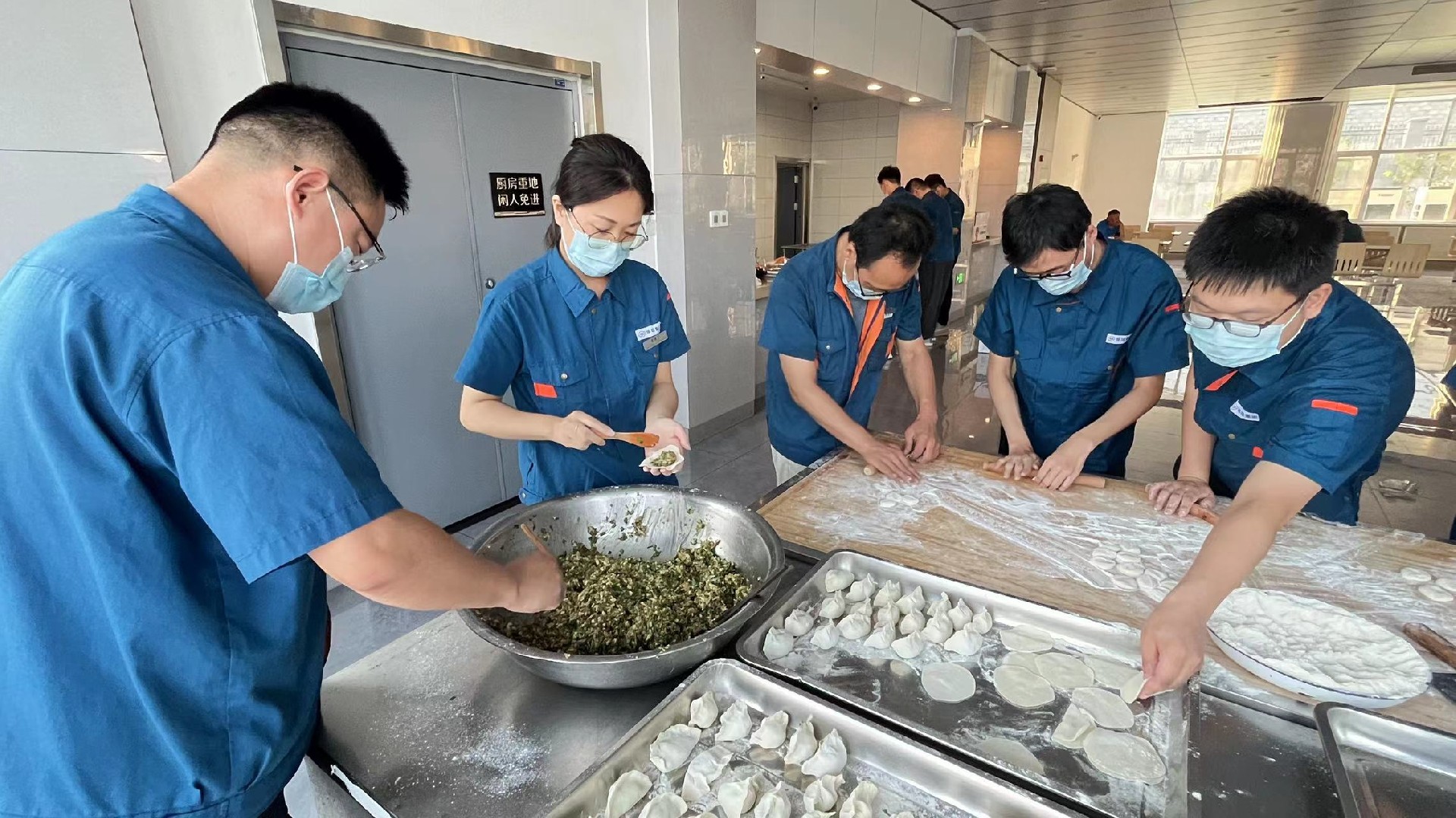 晚上,企業(yè)管理中心為導(dǎo)師及新員工們準(zhǔn)備了豐盛的歡迎冷餐會,按照膠東的習(xí)俗,每逢大事吃團(tuán)圓餃子,大家一起和面,一起拌餡,一起動手包水餃。師傅們紛紛對徒弟表示:“吃了水餃,咱們就是一家人了,好好干?!睅煾低降芎凸绢I(lǐng)導(dǎo)相對而坐,開懷暢飲,暢所欲言,自己包的餃子格外的香。