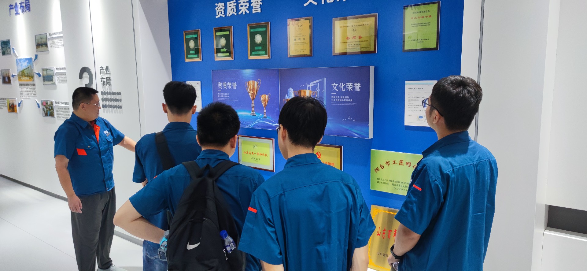 在入職培訓(xùn)中,公司副總經(jīng)理、總工程師景國豐向新入職技術(shù)員工詳細(xì)介紹了公司產(chǎn)品和技術(shù)發(fā)展情況,對技術(shù)崗位的職業(yè)發(fā)展前景進(jìn)行了概括并對新員工提出了崗位要求與期待,勉勵大家能夠秉持“不登高山,不知天之高也;不臨深溪,不知地之厚也”的精神,成為一名深入一線,事必躬行的技術(shù)人才。企業(yè)管理中心副主任王德祥、人事專員崔巖輝分別為新員工們講解了公司的企業(yè)文化、人力資源制度及人才補(bǔ)貼政策,王主任帶領(lǐng)大家參觀了廠區(qū)及多媒體展廳,并向新員工詳細(xì)介紹了企業(yè)發(fā)展歷程及獲得的榮譽(yù),大家對公司悠久的發(fā)展歷史感觸頗深,紛紛表示非常榮幸能剛畢業(yè)就應(yīng)聘進(jìn)入這樣一家有底蘊(yùn)的公司,希望未來的自己也能登上公司的榮譽(yù)榜,在企業(yè)的發(fā)展中留下自己的光輝痕跡。